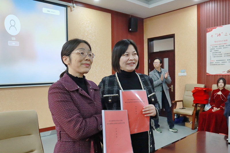 11月27日,我院与绍兴文理学院马克思主义学院举行协同共建签约仪式。校党委委员、院党委书记梁瑜,绍兴文理学院马克思主义学院院长、党委副书记杜坤林和党委书记陈红等班子成员、学院副院长李黎以及教师代表等出席仪式。