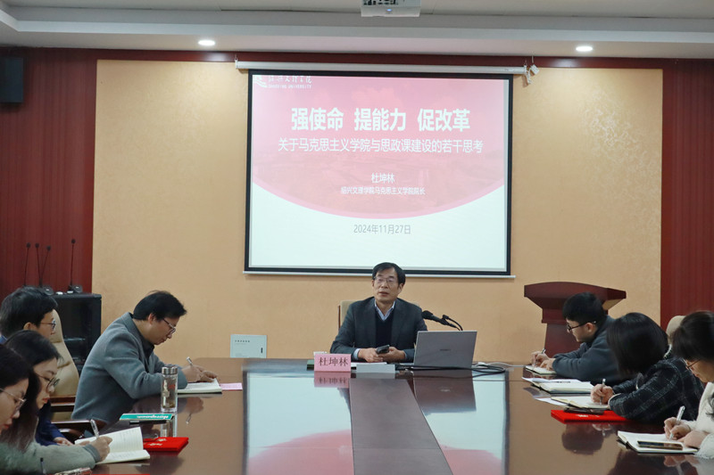杜坤林作“强使命、提能力、促改革——关于马院与思政建设的若干思考”专题讲座。他从责任与使命、问题与关键、破局与出路三个维度深入阐述马克思主义建设的特殊性和重要性,强调要锻造一支高水平的师资队伍,以“大思政”推动思政课改革创新。