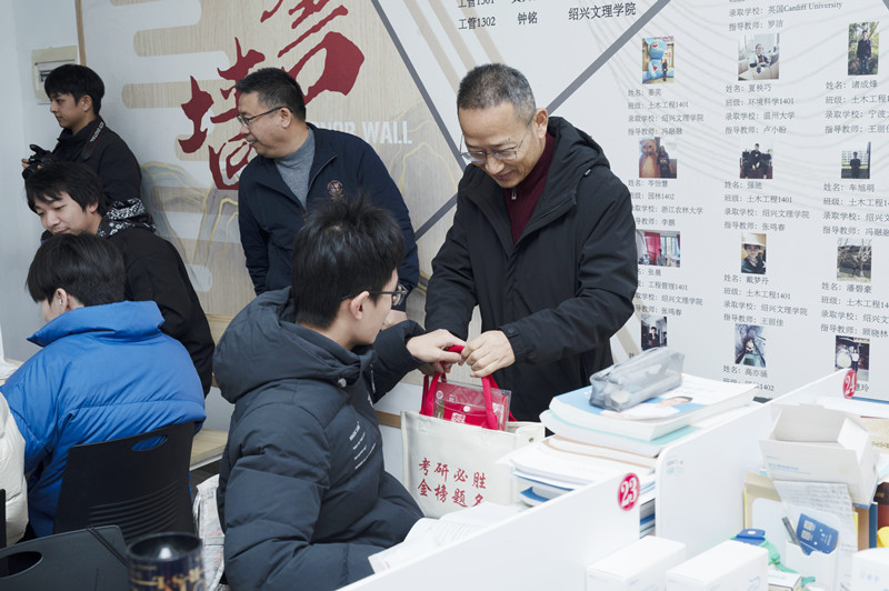 2025年全国硕士研究生招生考试在即,为关心关怀备考学子,提振士气,增强信心,12月13日上午,学院院长沈红卫、党委副书记石旭明与相关职能部门、分院负责人、辅导员深入考研自习室,看望慰问2025届考研学子,为紧张备考的学子们送上祝福。