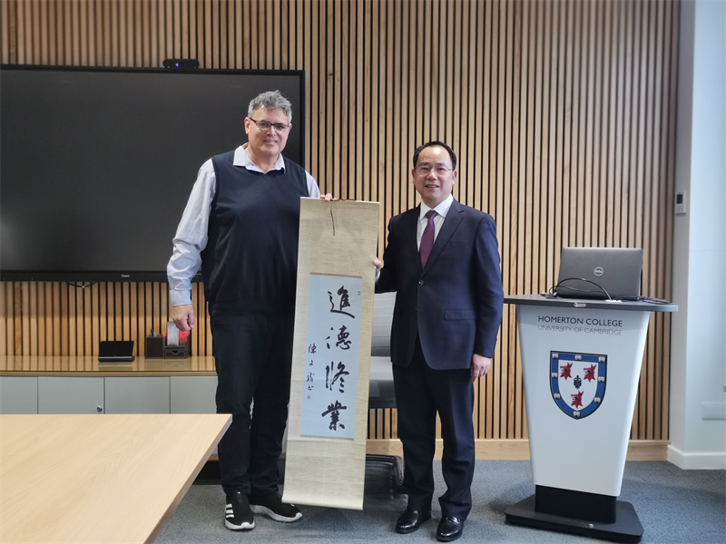 学院向剑桥大学教育学院赠送书法作品《进德修业》