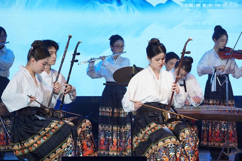 华灯初绽,弦歌起。本场晚会分为 “古韵新声 共庆华诞”、“筑梦山海 强国有我”和“璀璨新程 青春启航”三大篇章。乐器大合奏《梦回临安》拉开晚会帷幕,舞蹈《茶飘香》流淌着千年华夏的典雅韵致,走秀《Sing It Back》闪耀现代时尚的活力光芒, 歌曲联唱《少年》《送你一朵小红花》激昂嘹亮,舞蹈《青丝白发》婉约悠扬,朗诵《盛世华章,国之荣光》铿锵有力,古筝合奏《市集》满溢生活的烟火气息,舞蹈《鼓声响起的地方》燃烧奋进的炽热激情,合唱《身骑白马》传递梦想的灵动音符。晚会在歌曲对唱《幸福中国一起走》的悠扬旋律中圆满收官。