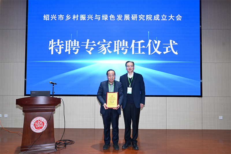 张宏为绍兴市乡村振兴与绿色发展研究院特聘专家顾益康教授颁发聘书。