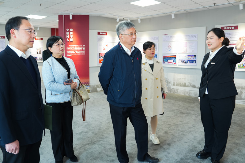 报告会前,冯长根一行实地走访调研红色学府和学院办学情况展,并为“镜湖大讲堂”题词。