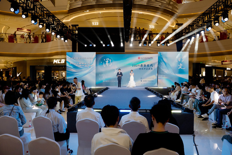 5月23日晚,学院2025届新生代时装毕业展演在绍兴龙湖天街璀璨启幕。学院院长沈红卫、党委副书记石旭明、教学总督导奚柏君,行业协会代表,服装、纺织、设计类领域企业嘉宾,师生代表等齐聚一堂,共同见证这场创意与匠心交织的视觉盛宴。本次展演吸引现场观众逾千人,线上直播观看量突破26万人次。