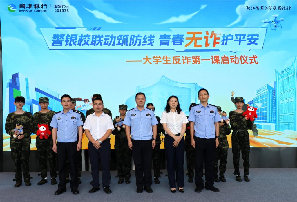 9月1日下午,由我院与绍兴市公安局越城区分局、瑞丰银行联合主办的“警银校联动筑防线 青春无诈护平安”——新生反诈第一课启动仪式在瑞丰银行镜湖数字金融中心举行。越城公安分局、瑞丰银行、校警驿站相关负责人、学院师生代表共同参与,正式开启新学年新生反诈教育第一课。