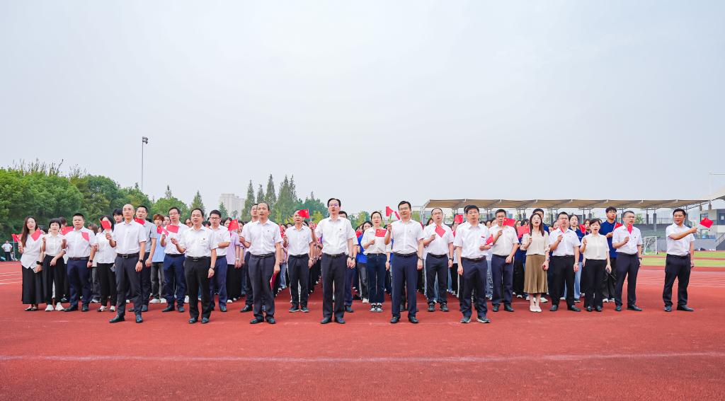 今天是我国第十二个“烈士纪念日”,在中华人民共和国成立76周年到来之际,9月30日清晨,绍兴理工学院田径场上激情满怀、红旗飘扬。校党委书记高建国、校长张宏等全体领导班子成员,各职能部门、二级学院负责人以及近800名师生代表共同参加“迎国庆升国旗”仪式。仪式由校党委副书记高丽静主持。