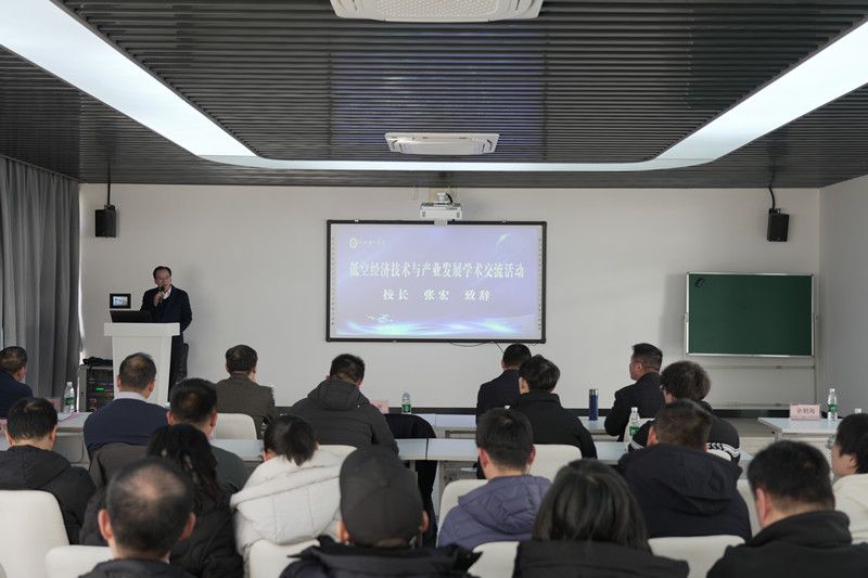 张宏在致辞中简要介绍了学校办学情况,向深耕低空经济领域的企业家代表及嘉宾表示热烈欢迎与诚挚感谢。他指出,积极抢占低空经济等新兴领域制高点,是我市构建现代化产业体系、培育发展新优势的重要举措。学校聚焦“低空经济技术与产业发展”举办此次学术交流活动,是主动服务国家战略需求、助力区域产业转型升级的具体行动。他表示,学校已在低空相关领域积淀了扎实的教学科研基础,期待以此次活动为契机,深度融入低空经济发展生态,推动校企资源深度融合,共同探索具有绍兴特色、彰显高校担当的低空经济发展实践路径,为区域低空经济高质量发展贡献力量。