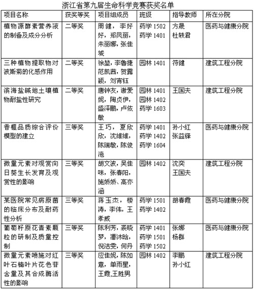 我院学子在浙江省第九届大学生生命科学竞赛中分获二、三等奖