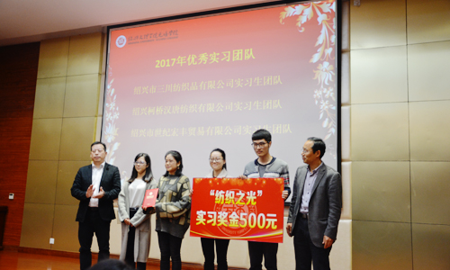 11月15日下午,学院召开绍兴中小纺织企业促进会—纺织服装与艺术设计分院实习表彰大会。学院党委副书记宣海江、副院长石旭明,绍兴中小纺织企业促进会会长江一炜、绍兴汉唐丝绸有限公司等20余家企业负责人应邀出席此次大会,纺织服装与艺术设计分院党政负责人及师生代表100余人参加会议。会议由纺织服装与艺术设计分院党总支负责人主持。