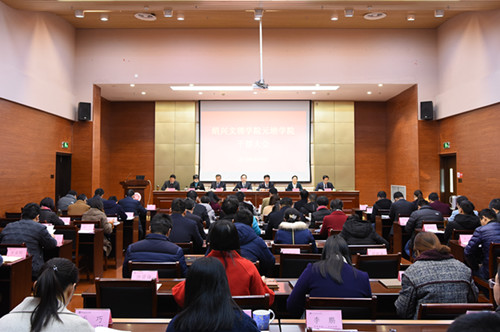 3月9日上午,学院2018年全院干部大会在图书馆828会议中心隆重举行。学院领导班子出席会议,全体主管级以上干部参加会议,叶访春主持会议。本次会议全面贯彻落实2018年全省教育系统工作会议、绍兴市抓落实工作会议和学校新学期中层干部会议精神,按照省委、省委教育工委、市委的部署和学校党委的要求,总结2017年学院工作,深入分析高教形势,研究部署2018年学院工作。