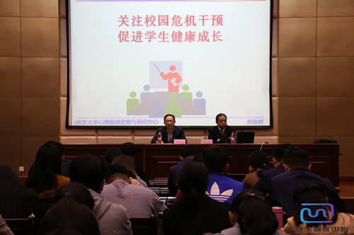 费俊峰教授在图书馆828会议中心作题为“关注校园危机干预,促进学生健康成长”的专题讲座