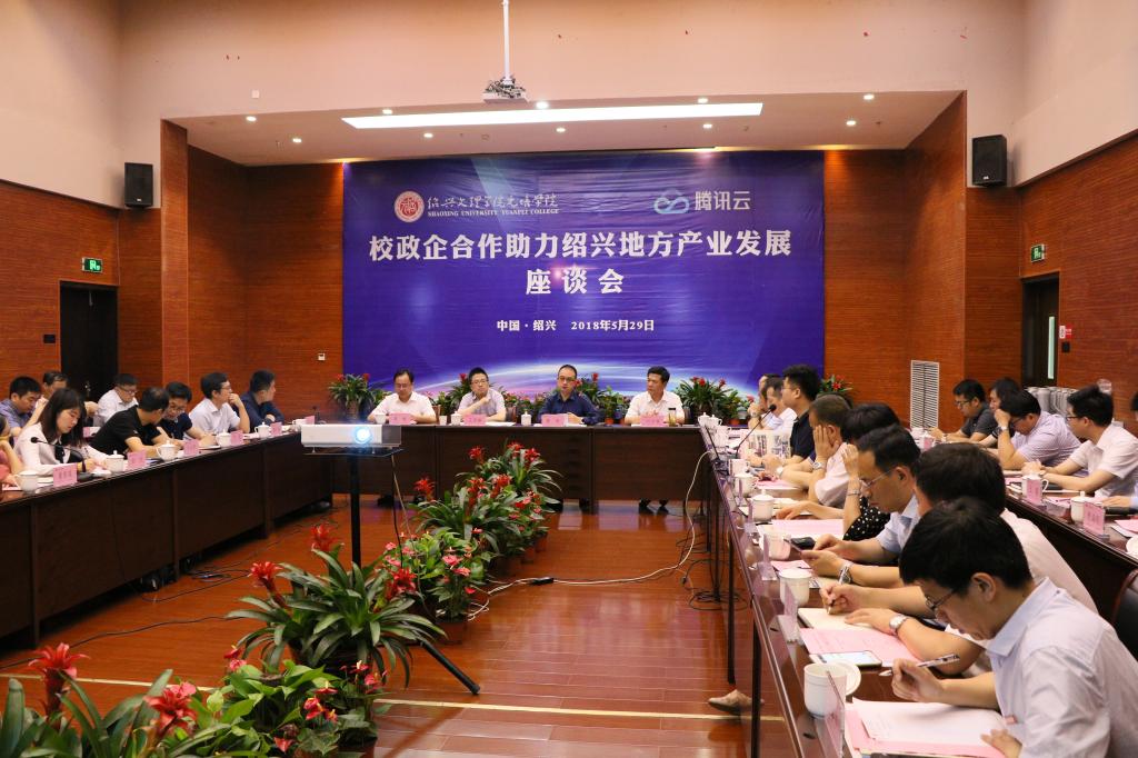 结合此次成立大会的举行,学院还组织举行了“校政企合作助力绍兴地方产业发展”多方交流座谈会。市教育局、科技局有关领导、腾讯云高层领导,学院校企合作企业代表、学院领导和分院负责人齐聚一堂,围绕《助推政企行业云端转型,助力构建智慧教育生态》和《为区域经济培养信息产业创新型人才》等议题进行意见交流和沟通,深度推进校企合作、产教融合模式研究和创新。