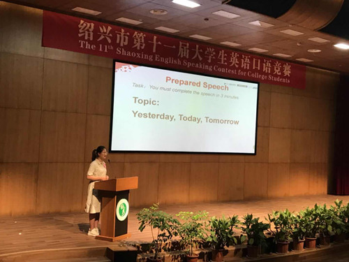 “一个人的眼睛是他现在的自己,一个人的口才是他将来的自己。Make your voice heard!”5月20日,绍兴市第11届大学生英语口语大赛在浙江越秀外国语学院举行。在绍高校59名选手参赛。我院6位参赛同学经过赛前充分的准备,在任荣、陈小苹两位老师的精心指导下,英语专业的汤睿同学斩获专业组一等奖,李慧倩,丁晨霞获得专业组三等奖;经济管理分院国贸专业的许雨薇、吴澄源获得非专业组三等奖。