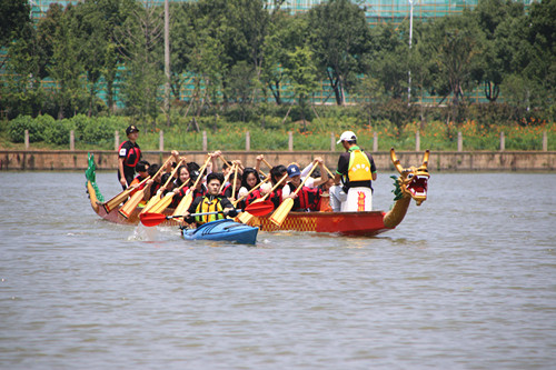 梁瑜在致辞中指出,迎龙舟、赛龙舟与彰显爱国主义情怀的端午传统民俗、民族精神密不可分。我院成立龙舟队,既是对中华民族传统文化的传承和弘扬,坚定对中华优秀传统文化的自信;又是以龙舟训练为平台培养学生团结奋斗、拼搏进取、开拓创新的精神;更是以龙舟赛事为契机,开展丰富多彩的水上运动,让更多师生锻炼身体,增强体质。他希望同学们通过参与和感受龙舟文化,在求知路上更加坚定胸怀祖国、心系家乡的理想信念,牢固树立为加快实现民族复兴、早日实现祖国强盛之梦的宏大志向。他鼓励我院龙舟代表队发扬比赛精神,赛出水平,赛出风格,赛出友谊。