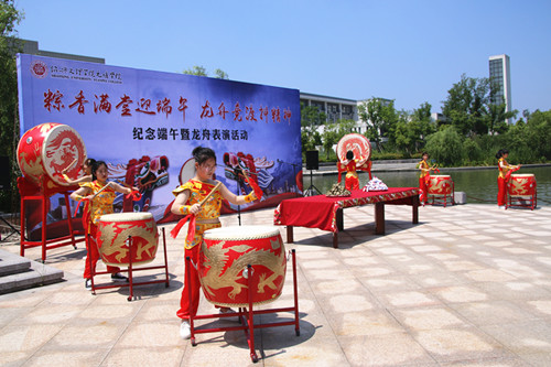为迎接中国传统佳节——端午节,6月11日上午,我院在大树江畔举行“粽香满堂迎端午,龙舟竞渡踏征程”——迎端午龙舟表演活动。此次活动既是学院龙舟队汇报展示,也是为龙舟队首次出征助威践行。学院领导梁瑜、叶访春、宣海江、石旭明出席仪式。办公室、组织宣传部、学工部相关负责人,公共基础教育分院体育教研室全体教师,龙舟队、皮划艇队全体成员及各分院师生代表参加活动。公共基础教育分院负责人主持活动。