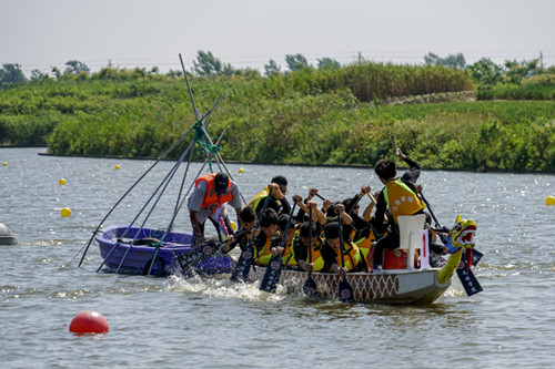 扬帆起航,劈波斩浪,6月13日至15日,浙江省大湾区龙舟邀请赛暨慈溪滨海经济开发区(龙山镇)第四届徐福文化艺术节开幕式在浙江省慈溪市龙山镇举行。我院龙舟队14名成员在领队余丁友和教练员丁海洋带领下首次出征,在比赛中跃浪争先、奋力拼搏,分别获得200米、500米直道赛第十名与总成绩第十的良好成绩。其中,在200米、500米直道赛排位赛中均获小组第一,500米直道赛成绩甚至比第一天小组赛成绩提高了6秒。