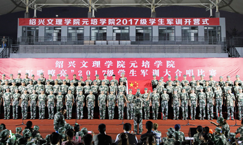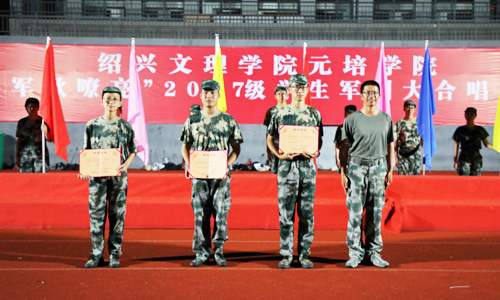 军训是一种拼搏,一种较量,一种坚强的拔节,那么军歌就是军训美丽的点缀。比赛现场,同学们军姿严整,精神饱满,训练场上的整齐步伐演绎成了振奋人心的青春旋律。《打靶归来》《保卫黄河》《强军战歌》《中国军魂》等一首首军歌、红歌唱出了坚韧执着、唱出了激情豪迈,满腔热情的红色经典诗朗诵、形式多样的队形变换、精心编排的手语表演,各个比赛队不仅展露了同学们嘹亮的歌声 ,更展现了元培学子的青春风貌。经过激烈的角逐,来自经济管理分院第五连、第九连和信息与机电工程分院第十二连荣获一等奖。最后,在医药与健康分院曹敏老师的指挥下,全场合唱《当祖国召唤的时候》,比赛在全体师生拳拳爱国之情的歌声中圆满落幕,
