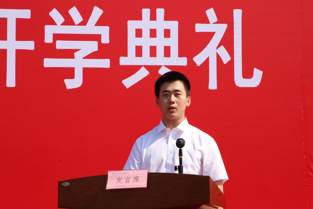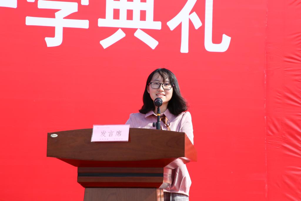 教师代表、医药与健康分院王萌博士,在校生代表、纺织服装与艺术设计分院环境设计1701班俞钧均,新生代表、语言文学分院中国语言文学类1801班魏宇佳,中国语言文学类1802班夏孜家长夏伟龙,我院07级校友、精工控股集团高级人力资源经理杨家欢分别上台发言,共同描绘对未来学习和生活的美好愿景。财会1805班何世博代表全体新生上台宣读了新生安全文明尚学守纪自律承诺书。