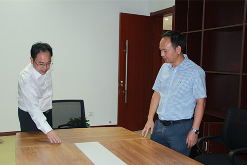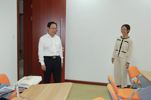梁瑜一行首先来到国际文化交流中心,查看国际交流咨询服务中心、团委办公室、蔡元培研究中心、学生排练室、院史陈列馆(待建)及会议室等功能空间,参观各个功能区的布局架构和实物陈列,详细了解功能区硬件设施建设、环境空气质量、办公绿化建设等情况,对国际文化交流中心高效率高标准的搬迁动作、兼具优雅与时尚的设计风格,周到细致、着眼长远的布局规划予以充分肯定,并要求有关部门要在硬件环境改善的基础上,进一步立足岗位创新、提升服务质量,打造学院窗口服务形象品牌。