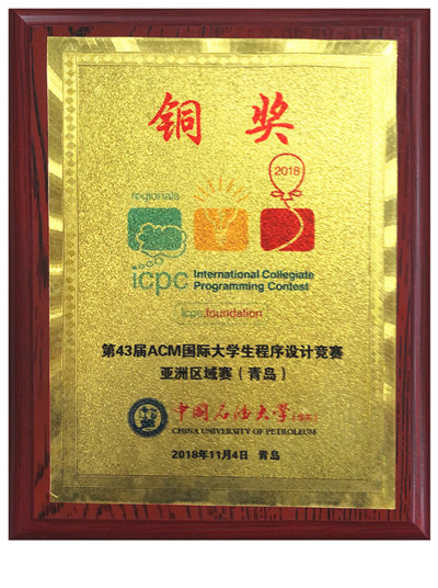 11月3-4日,第43届ACM-ICPC国际大学生程序设计竞赛亚洲区域赛(青岛)在中国石油大学(华东)举行。我院电子信息工程1501班金亮、计算机1602班周泽成、计算机1602班陈军组成的“哈士奇与扫雷王者”代表队(蔡尚真老师指导)获得铜奖,在全国的的226 所高校和7 所中学的373 支参赛队伍中排名125,在参赛高校中排名87。这是自我院今年获得该赛(南京)铜奖之后,又一次获得的国际奖项。