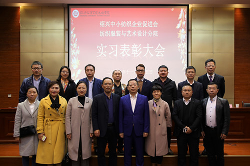 11月25日上午,绍兴中小纺织企业促进会暨纺织服装与艺术设计分院实习表彰大会在图书馆828会议中心举行。学院党委副书记宣海江,绍兴中小纺织企业促进会会长、绍兴三川纺织品有限公司总经理江一玮,促进会执行秘书长王利生以及企业嘉宾代表等出席活动。促进会会员企业负责人、纺织服装与艺术设计分院相关负责人、博士代表、专业负责人以及师生代表等参加活动。会议由分院党总支负责人主持。