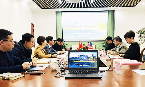 叶访春对佛罗里达国际大学代表团一行来访表示诚挚欢迎,并从学院办学规模、学院设置、办学特色和国际化工作推进等方面介绍了学院基本情况。叶访春表示,学院高度重视国际交流合作,着力打造国际化教育特色,希望双方以此次交流为契机,以硕士研究生项目为切入点,在教师访学、短期交流、托福/雅思培训等方面深入推进两校合作。