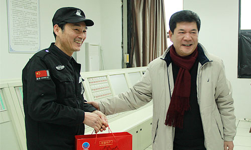 叶访春慰问保卫处消控中心、西大门门岗及派出所警务室、110报警中心寒假在岗教职员工