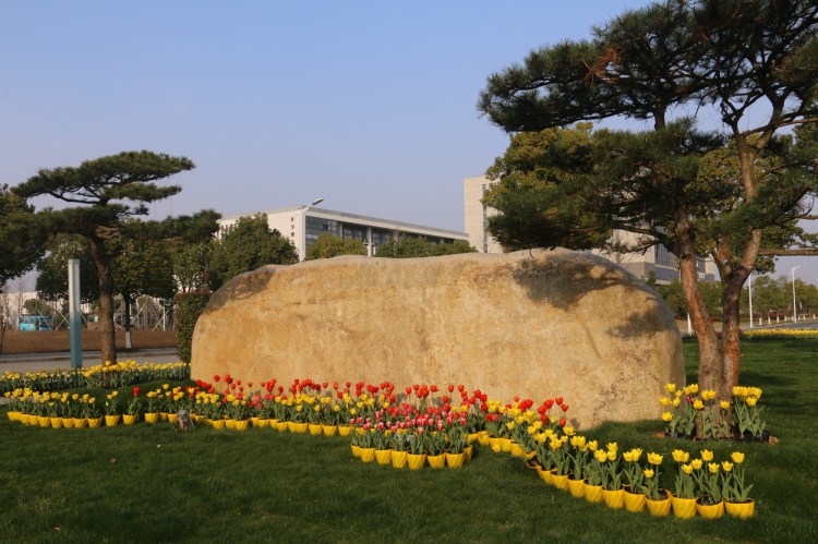芬芳沁人脾,春意暖校园。近日,蔡元培铜像旁、西大门花坛中、明德桥下的草坪上、园林实践基地内,一簇簇郁金花竞相争艳,一束束挺立,或金黄或粉红,或聚拢或点缀,装点的校园更加生机……这正是园林专业的师生们在温室大棚内共同精心栽培的成果。