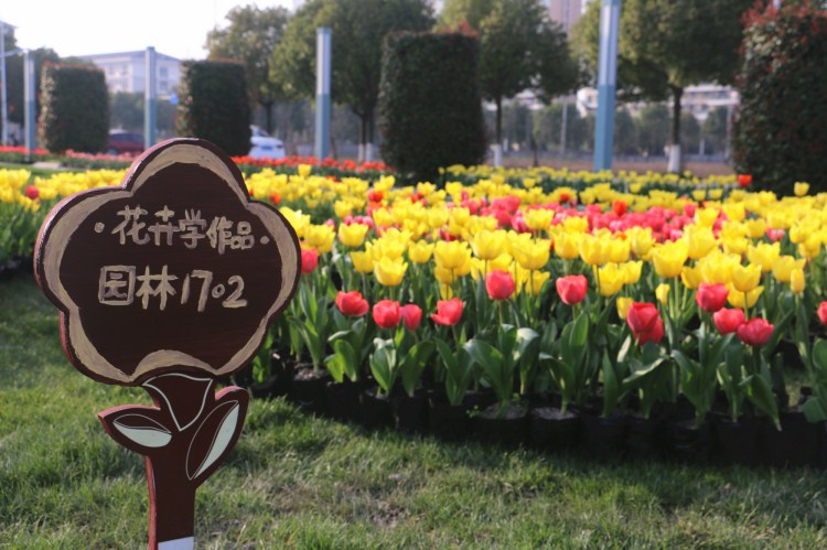 “郁金香的花期虽然只有短短的一个月,但这背后,是我们园林专业的全体师生近半年的辛苦付出”。陈同学说。从挑选种球,调配土壤,到营造适宜温度,创造良好的光照时间,同学们都亲自上手,动手种植;泥炭土和蛏石以什么样的比例混合,郁金香种球怎样放入泥土,在老师们的现场教学指导下,同学们将理论与实践充分结合起来,所学亦所用。“这种情景教学除了可以加深同学们对专业知识的理解,还能提升他们的意志品质。亲自使用铁锹种植花卉,亲手碰触泥土能更好地培养他们不怕脏、不怕累的专业情怀,提高对将来就业形势的认识水平。”园林专业负责人王国夫老师说道。