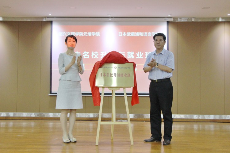 揭牌仪式上,叶访春和玉田英子共同为“日本名校升硕与就业班”揭牌。叶访春为“升硕班”班主任章培蓓老师颁发聘书。玉田英子向“升硕班”学员代表授班旗。与会人员还共同观看了原视觉传达1501班葛俊同学在武藏浦和日本语学院学习生活的视频。