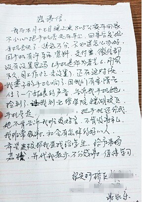 6月18日,学院收到了一封柯桥区谢永乐先生的来信,信中感谢两位拾金不昧,诚信助人不留名的同学。