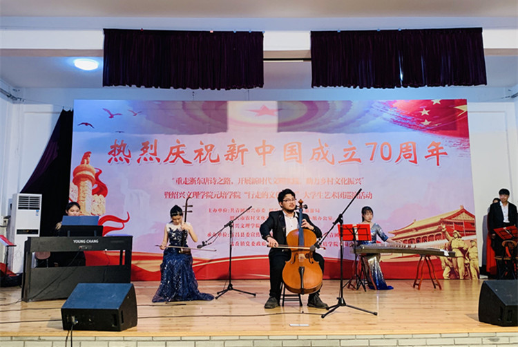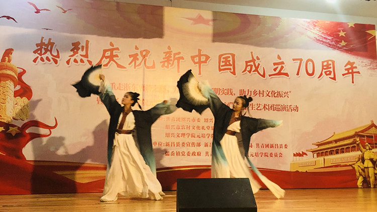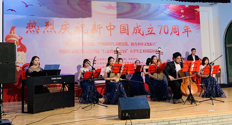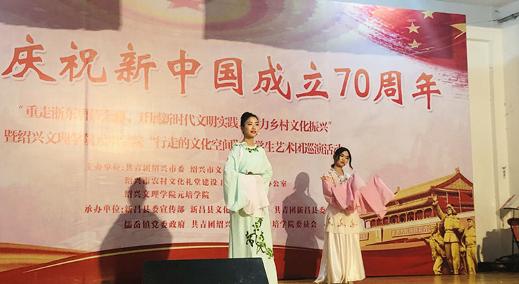 中原崛起,中华复兴,通过此次暑期社会实践的巡演活动,学院大学生艺术团的青年团员学生们不忘使命,牢记使命,用自己的青春和激情,勇担振兴乡村文化的责任。我们将继续相约在年轻的时代潮头,共同点燃历久弥新的信心灯塔。任风雨洗吹,时光荏苒,从江南杨柳岸走来,一路追寻浙东唐诗之路上的足迹,传承诗路文化,助力乡村振兴,为新中国成立70周年喝彩,为神州华夏祝福。