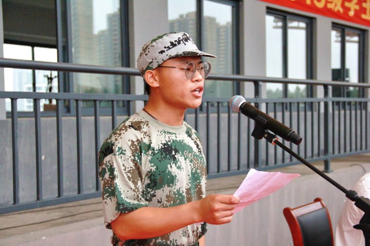 军训团学员代表谭海辉发言