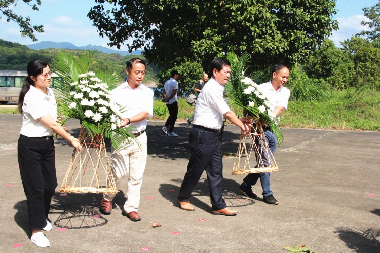 全体成员向梁柏台烈士纪念碑行三鞠躬