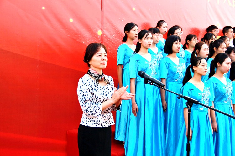 学院全体师生党员、学生代表和建设银行绍兴分行的党员代表同唱国歌