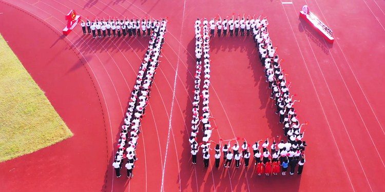 7时30分,郝敬习宣布仪式正式开始,伴随着《歌唱祖国》悠扬的旋律,国旗护卫队以整齐划一、铿锵有力的步伐正步而出,依次穿过由全院及建行党员、预备党员、学生代表组成的“70”字样方阵,气势恢宏地走到升旗台前,庄严的升国旗仪式正式拉开帷幕。我院合唱团领唱《义勇军进行曲》,五星红旗迎风飘扬,舒展在蔚蓝的天空,随着雄壮的国歌声冉冉升起。在场的全体师生员工身着统一正装,整齐列队、齐声高歌,挥舞着手中的国旗,用饱满的热情,昂扬的斗志表达了对伟大祖国的衷心爱戴和真诚歌颂。