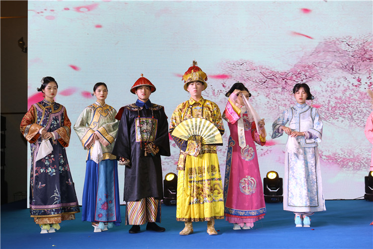 促进会成立大会上,纺织服装与艺术设计分院精心排练古今服饰秀《锦绣中华》,自汉代服饰的端庄古朴到唐朝的繁华绚丽,从清朝的保守简约到民国的优雅端庄,再到今天的新颖时尚,服饰变迁的历史就是一部各民族相互融合、民族文化相互影响相互促进的进化史,充分展现了中华传统文化的独特魅力。汉服的整体结构主要分为深衣制、上衣下裳制、襦裙制三大类,服饰在整体上呈现凝重、典雅的风格,对我国当今服装的发展具有较大的启示作用。唐代服饰制度更为考究,形制更加开放,服饰愈益华丽,同时服饰图案也趋向于表现自由,构图饱满的艺术风格。清朝服饰色彩鲜艳复杂,用料等花色品种多样,喜用对比度高的色彩搭配,最典型的为旗装具有用料节省、制作简便、穿着便利的时期特点,同时它也是民国时期旗袍的先驱。民国男性服饰特色多表现为大襟右衽,平袖端,盘扣等,女子的典型服装为旗袍,旗袍是中国古代服装史上一颗璀璨的明星,在中国历史上留下了不可磨灭的痕迹。