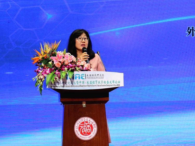中国—东盟中心汪红柳主任致辞,对东盟经济研究院的成立表示衷心祝贺,详细阐释了中国与东盟全面深入的关系。她指出,东盟经济研究院作为由一个优秀大学和杰出科技企业共同创立的机构,令人瞩目和期待。希望研究院加倍努力,成为集研究、学习和探讨为一体的平台,充分发挥地区作用,交流互鉴、扩大共识,同时与东盟和中国各界人士开展合作,为加深中国—东盟友谊与合作做出新的贡献。