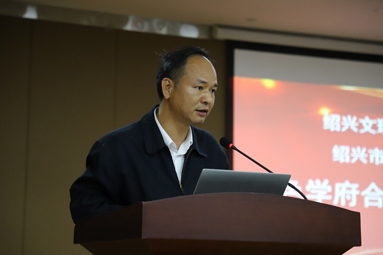 石旭明在致辞中对绍兴市委党史研究室一直以来给予学院的帮助和支持表示感谢。他表示,自2018年“红色书架”入驻学院红色学府以来,双方沟通与联系不断加强,合作基础更为扎实。此次签约必将进一步巩固和紧密双方关系,推动合作深入发展步入新阶段。他指出,红色学府肩负着对学生思想引领和人格培养的使命,责任重大,而绍兴市委党史研究室具有地方党史和国史研究的专长,两相结合,优势互补,必将谱写绍兴高校与地方文化研究部门合作共建的一段佳话。