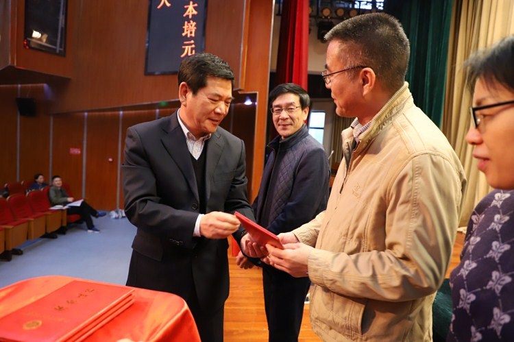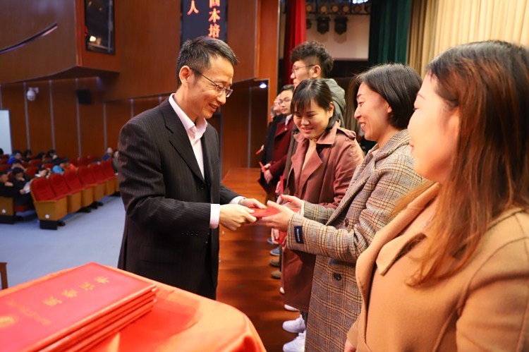 大会表彰了2018-2019学年教学优秀奖和学院首届外聘教师教学优秀奖教师,周思红宣读获奖名单,叶访春、沈红卫分别为学院首届外聘教师教学优秀奖获得者、学院教学优秀奖获得者颁发荣誉证书。