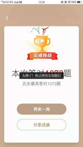 “连续完成‘学习强国’挑战答题环节通关”、“完成挑战答题通关1073题”、“平均每道题目耗时2.89秒”......近日,来自医药与健康分院的赵文胜同学在朋友圈里“火”了,七天通关“学习强国”挑战答题的战绩在老师和同学之间广为流传,令人赞叹。“学无止境,习以为常,强识博闻,国而忘家”,大家都这么评价他。