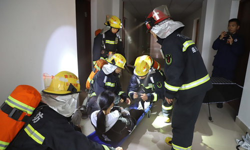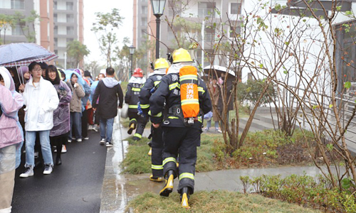 11月27日,在北区学生公寓12、13幢开展了消防应急疏散演练,各分院书记(副书记)、学生辅导员、消防救援官兵、辖区民警、义务消防员及学生代表等800余人参加应急演练。随着学生公寓弥漫的烟雾,消防疏散信号的拉响,公寓楼内各楼层在疏散引导小组人员的指挥与引导下,用湿毛巾捂住口鼻,弯腰、快速从楼梯有序向楼下撤离。随后学院微型消防站消防员、警务室救援队、医务室120急救车、消防救援车根据预定时间陆续到达救援现场,迅速进入公寓对火灾与人员进行救援、疏散。现场还对伤员担架救援、登高云梯救援等项目进行实战演练,最终全部学生均顺利撤离至安全区域。整个应急演练活动安全有序、规范高效,现场没有发生一例奔跑跌倒、拥挤踩踏等事故,达到了演练的预期目标。
