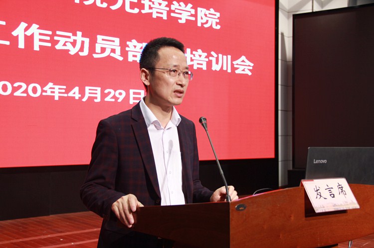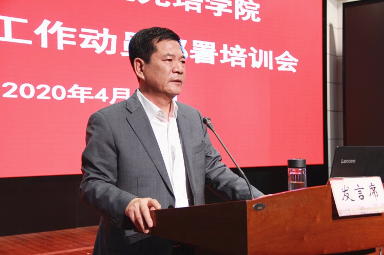 石旭明围绕疫情防控工作组织领导、政策依据、前期准备、开学返校及有关事项作了总体部署安排,围绕各项要求进行了专题讲解培训。石旭明强调,开学返校工作是学院当前的首要任务,圆满完成这项工作具有极端重要性。全体师生员工既要按照上级要求落实最严格的管控措施,又要带着感情、设身处地为师生提供最人文的管理服务,以最大的同心圆形成师生的最大合力,以“大考”的担当,交好“大考”的答卷。