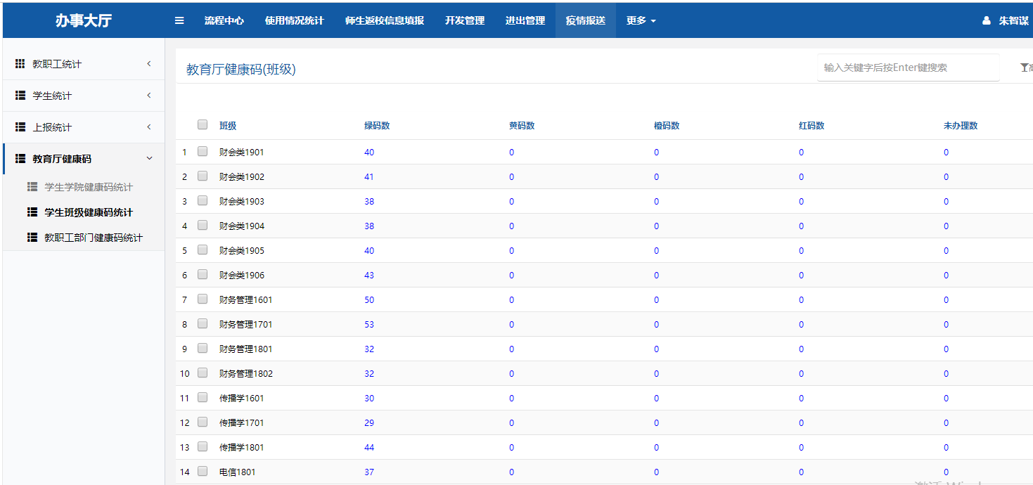 目前有多少学生是灰码?返校前14天学生身体健康状况如何?师生群体中有无感染......疫情期间,学院网络信息中心充分利用已有的元培智慧校园平台,及时开发了健康信息上报、师生返校健康申报、校外人员入校申请、学生返校交通信息填报、元培校园通行码、学生请假等六大系统,“精细”“高效”助力打赢疫情防控阻击战,在辅助疫情研判、加强校园管控、提升服务效率等方面发挥了积极的作用。