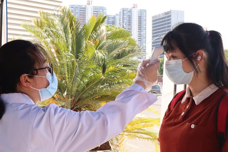 “同学,你好!请按照地标一米线有序通过测温区,谢谢!”5月6日是学生返校报道的首日,学院西大门的志愿队队员们每天坚守在自己的岗位,守住安全防线第一道大门,为每一位返校师生进行体温监测,异常排查,若体温异常将会由相关卫生员带领前往临时隔离点反复测温。在南北区每层食堂的入口,同样也有我们抗疫志愿服务队的身影,他们维持着出入餐厅人员的秩序,引导师生按照要求排队测温通过,保障师生放心进入餐厅用餐。5月11日食堂测温屏临时出现故障,但卫生员们没有因此乱了阵脚,每个人手持额温枪对进入的人员进行体温检测,认真地履行自己的职责,当好疫情防控“守门员”。每一份坚守都是为了给师生的安全添一份保障。