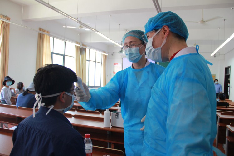 校园疫情防控工作责任重,任务繁杂,无论是中午十二点还是凌晨一点,无论是教学楼还是寝室,一旦有同学身体不适,当日值班医生就会第一时间赶到并依照流程处置。“处置流程看似简单,但学生人数一旦增加,工作量便会成倍地加大。以测温为例简单计算,每人都进行隔十分钟三次体温复测,一位同学就是半个小时,十位同学就是五个小时。”庞大的工作量,不间断的工作,刘跃民常常都忙得顾不上中饭晚饭,更别提午间休息。“我做医生挺多年了,忙碌已司空见惯,我们多一份担当,学生也就多一份平安。”她说。