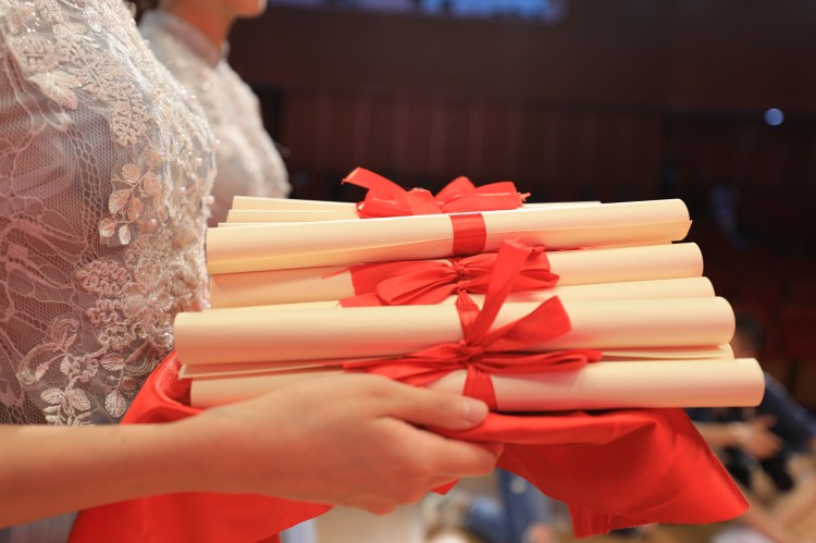 6月15日下午1点,学院2020届毕业生学士学位授予仪式在国际文化交流中心报告厅隆重举行。这是学院为2020届获得学士学位的毕业生们送上的一份特别礼物。仪式持续近一天半,长达10个小时内,院长沈红卫坚持自己站台,亲自为近1400余名毕业生逐一颁发学位证书、扶正流苏并合影留念。一位位毕业生头戴整齐的毕业帽,换上统一的学士服,整齐有序上台,与院长亲切地握手、合影,完成庄严的学位授予仪式。各分院和职能部门负责人,教师、辅导员代表等参加仪式。