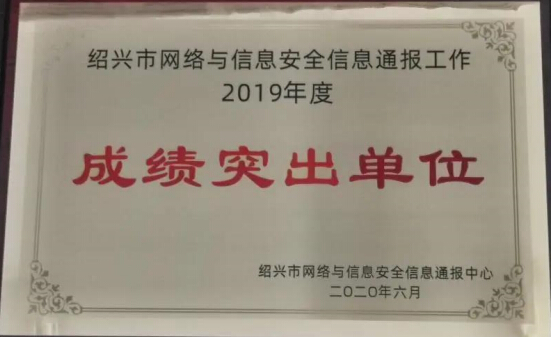近日,市网络与信息安全信息通报中心对2019年全市网络与信息安全通报工作评估结果进行了通报,全市仅6家单位获殊荣,学院作为在绍高校中唯一一所被评为2019年绍兴市网络与信息安全信息通报工作成绩突出单位,网络信息中心朱智谋被评为2019年绍兴市网络与信息安全信息通报工作成绩突出个人。