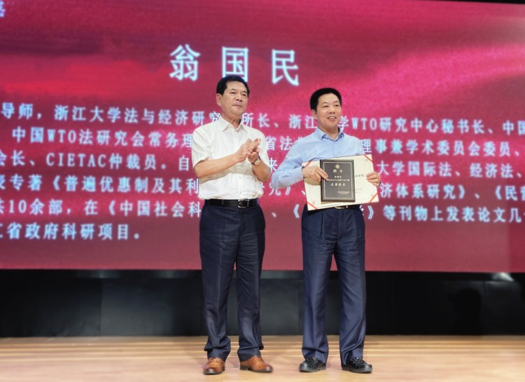 名誉院长翁国民教授为客座教授虞伟庆颁发聘书