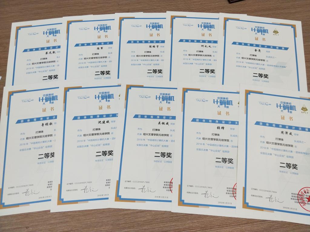 鼓励学生参加PAT考证,PAT为企业选拔人才提供参考标准,为考证学生获得企业敲门砖。多人在PAT乙级中满分,其中学生金亮在2018年冬季考试中只用1个小时(3小时考试时间)获得了顶级(乙级中文题、甲级与顶级都是英文题)满分的好成绩。